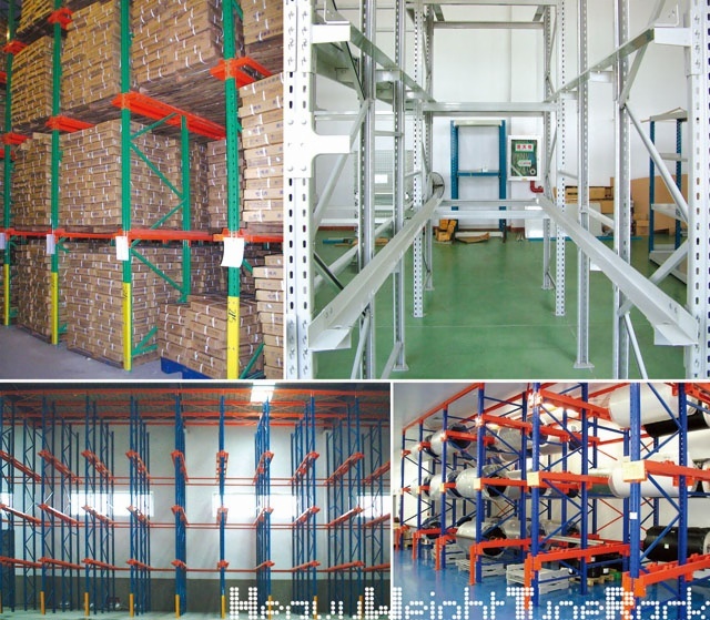 贯通架/驶入式货架适合存储量大、品种少的货物,叉车可进入巷道内存储货物,储存密度大。驶入式货架有不同的设计方式(货架末端有无支撑杆封闭),实现货物先进后出的管理。