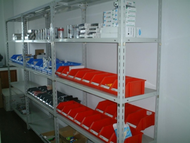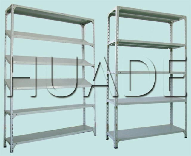 角钢架采用万能角钢为立柱的轻量型钢层板货架,按连接和插接方式组装,安装拆卸方便,钢层板上下以50mm为节距任意调节,满足多种使用要求。